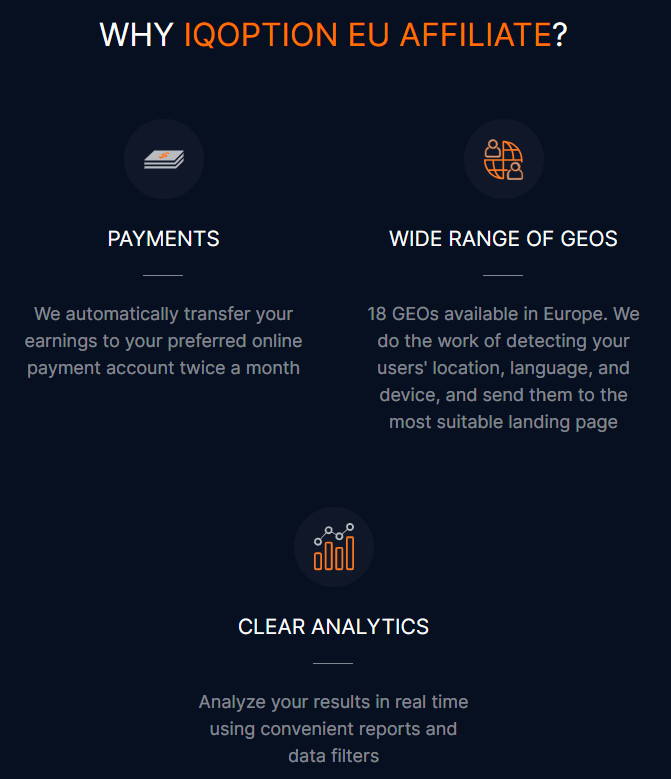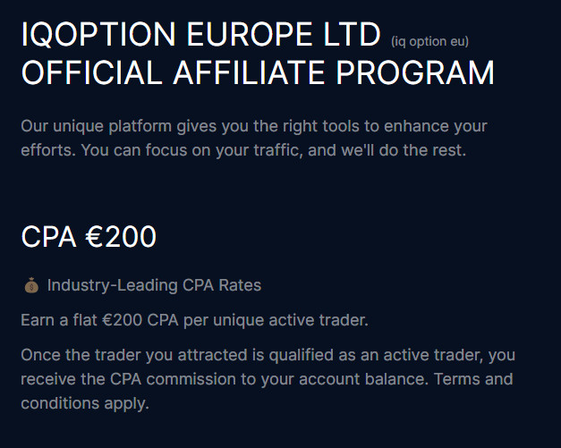 Visitors who register on the IQ Option investment system and begin trading are attributed to the referring affiliate.