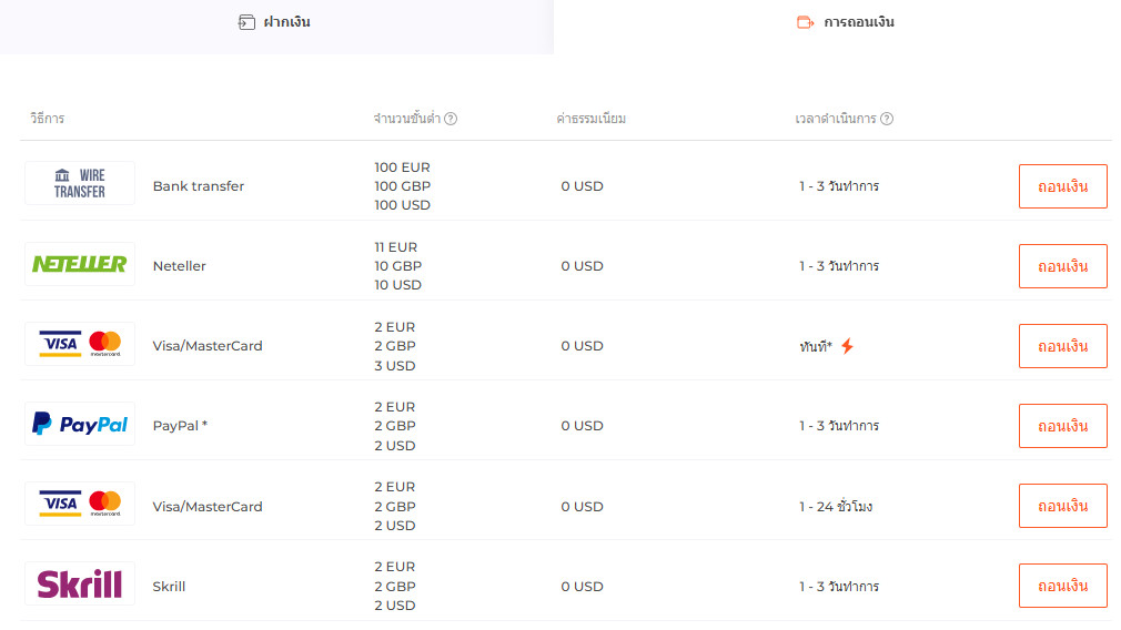 • ใช้วิธีการถอนที่แตกต่างจากวิธีการฝากเงิน